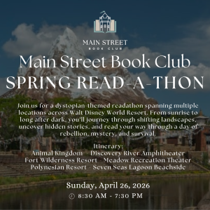 Join us for a dystopian-themed readathon spanning multiple locations across Walt Disney World Resort. From sunrise to long after dark, you’ll journey through shifting landscapes, uncover hidden stories, and read your way through a day of rebellion, mystery, and survival.